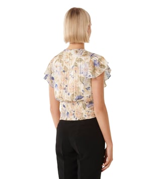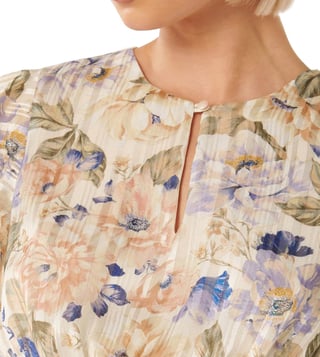 Register your lambent presence with this awesome multihued top from the latest offering of Forever New. Beautifully crafted in premium polyester with metallised fibre for a nice sheen, soft touch and unmatched comfort, it's trendy floral pattern and well engineered regular fit silhouette make it a must-have piece for the season's outings. Pair it best with denims for a carefree look.