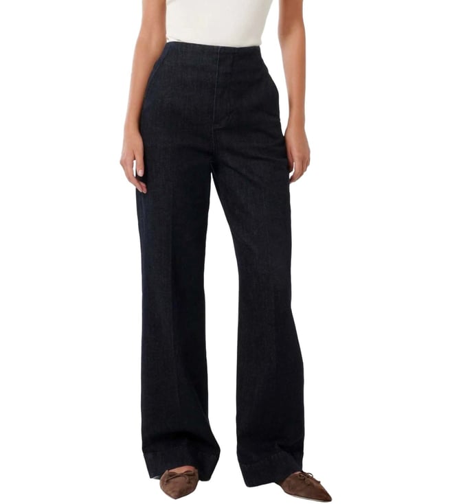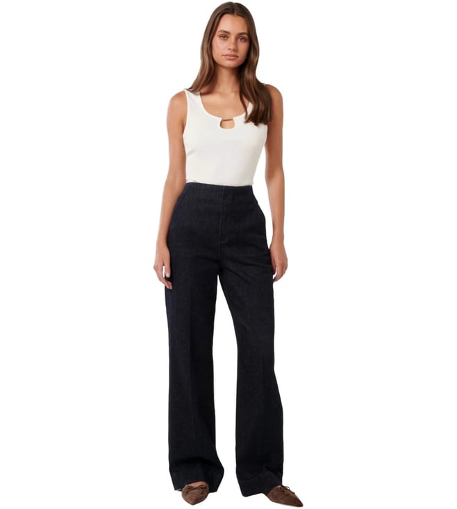 Slay the look by wearing this pair of dark rinse wash flare fit jeans from Forever New. Tailored to sartorial perfection from premium quality fabric, it assures a soft and soothing touch against the skin.