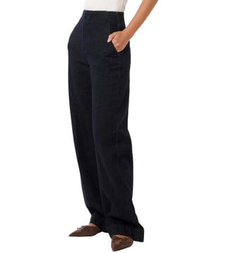 Slay the look by wearing this pair of dark rinse wash flare fit jeans from Forever New. Tailored to sartorial perfection from premium quality fabric, it assures a soft and soothing touch against the skin.
