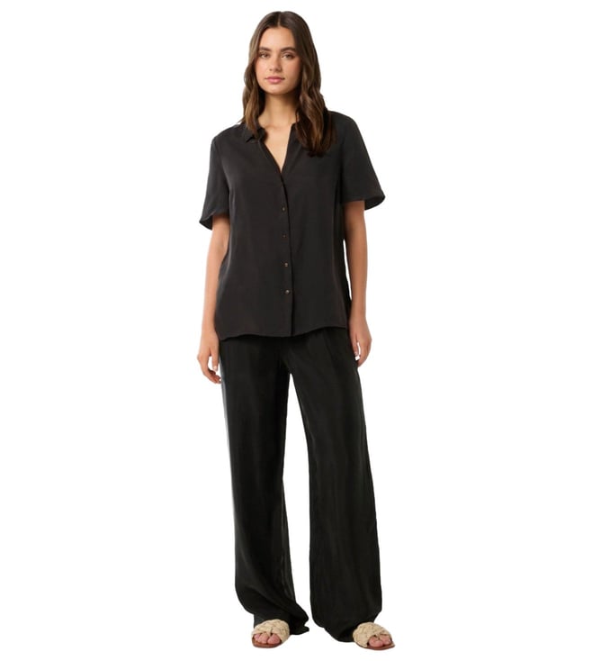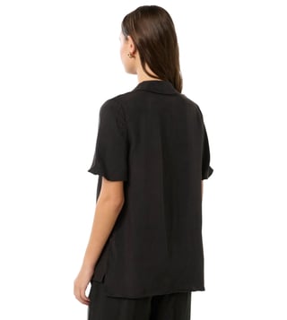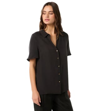Take a fashion-forward stance by wearing this black relaxed fit shirt from Forever New. Tailored to sartorial perfection from premium quality fabric, it assures a soft and soothing touch against the skin. The shirt collar adds to its appeal. Exuding short sleeves, it is sure to fetch you compliments from all.