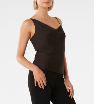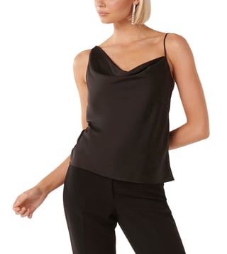 Register your lambent presence with this awesome black top from the latest offering of Forever New. Beautifully crafted in premium polyester for a nice sheen, soft touch and unmatched comfort, it's trendy solid pattern and well engineered regular fit silhouette make it a must-have piece for the season's outings. Pair it best with denims for a carefree look.