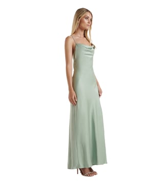 Enrich your repertoire to prepare well for the new season's evenings with this gorgeous green maxi dress from the latest collection of Forever New. Beautifully tailored in premium poly viscose for luxurious softness and feel packed with fine sheen and excellent drape, it's vibrant color-block pattern and trendy cowl neck design should get you bouquets of compliments. Pair it with matching heels for a stunning look.