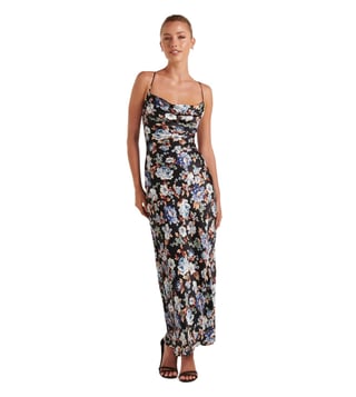 Enrich your repertoire to prepare well for the new season's outings with this gorgeous multihued maxi dress from the latest collection of Forever New. Beautifully tailored in premium viscose for luxurious softness and feel packed with fine sheen and excellent drape, it's vibrant print pattern and trendy cowl neck design should get you bouquets of compliments. Pair it with matching heels for a stunning look.