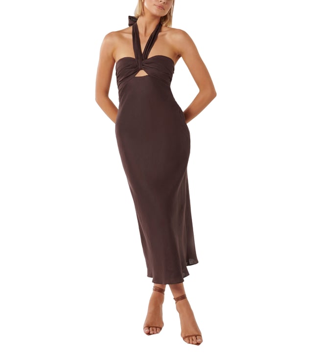 X Pooja Hegde Bronze Spencer Plisse Regular Fit Midi Dress