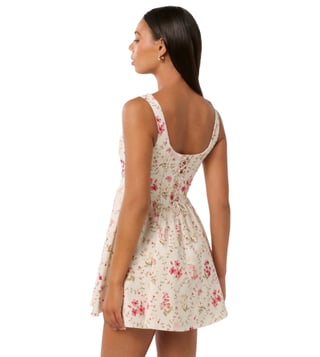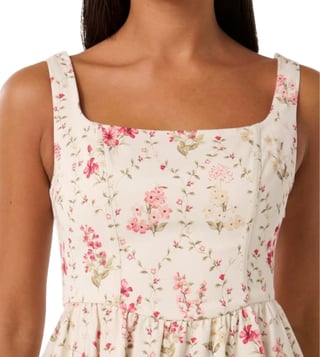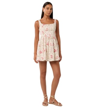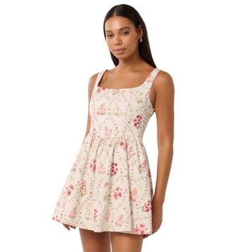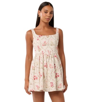 Score high on the fashion radar by wearing this garden trellis regular fit dress from Forever New. Tailored to sartorial perfection from premium quality fabric, it assures a soft and soothing touch against the skin. The square neck magnifies its overall appeal. Flaunting stylish shoulder straps, it will surely keep you updated with the latest trend. The floral print makes it a bewitching choice.