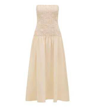 Elevate your wardrobe with the Forever New Neutral Cara Crochet Flare Fit Midi A-Line Dress. This stunning piece features intricate crochet detailing and a flattering A-line silhouette that effortlessly combines elegance and style. The neutral color palette makes it versatile for any occasion, while the midi length adds a touch of sophistication. Crafted with high-quality materials, this dress offers both comfort and durability, ensuring you look and feel your best all day long. Make a statement and turn heads wherever you go with this timeless and chic dress.
