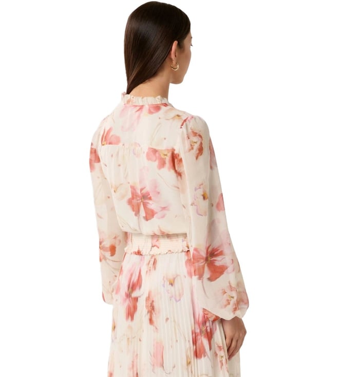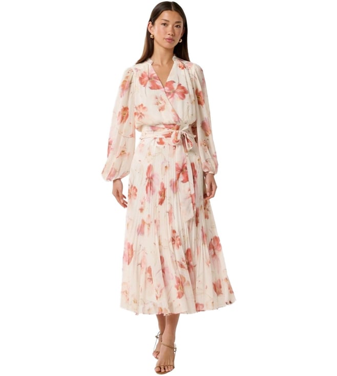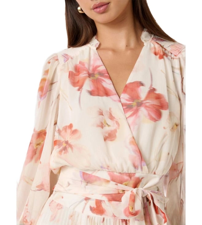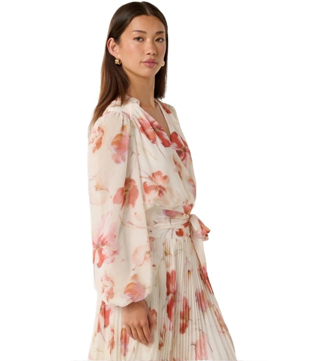 Create a lasting impression on the onlookers by wearing this white dress from Forever New. Tailored to sartorial perfection from premium quality fabric, it assures a soft and soothing touch against the skin. The V-neckline adds to its appeal. Exuding full sleeves, it is sure to fetch you compliments from all. The floral print makes it a bewitching choice.