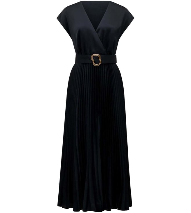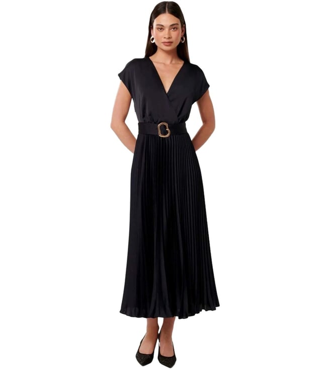 Get ready to be overwhelmed with a flurry of compliments by wearing this blue dress with belt from Forever New. Tailored to sartorial perfection from premium quality fabric, it assures a soft and soothing touch against the skin. The V-neckline adds to its appeal.