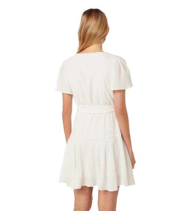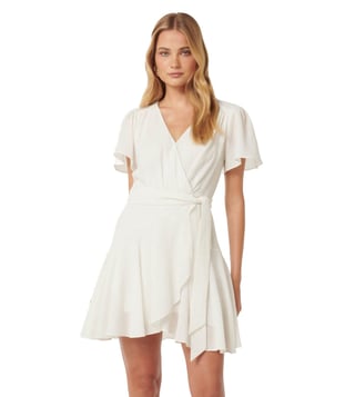 Enrich your repertoire to prepare well for the new season's evenings with this gorgeous white wrap dress from the latest collection of Forever New. Beautifully tailored in premium stretch lyocell polyester for luxurious softness and feel packed with fine sheen and excellent drape, it's modern color-block pattern and trendy v neck design should get you bouquets of compliments. Pair it with matching heels for a stunning look.