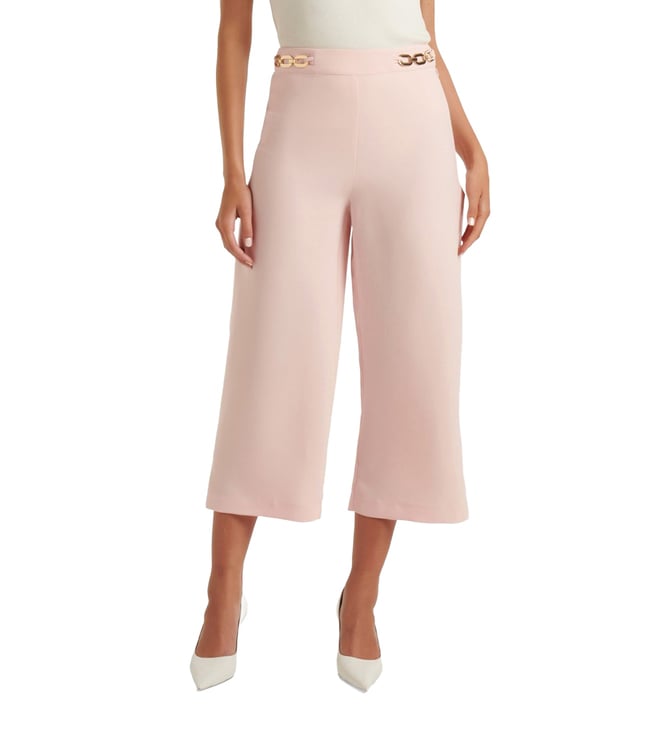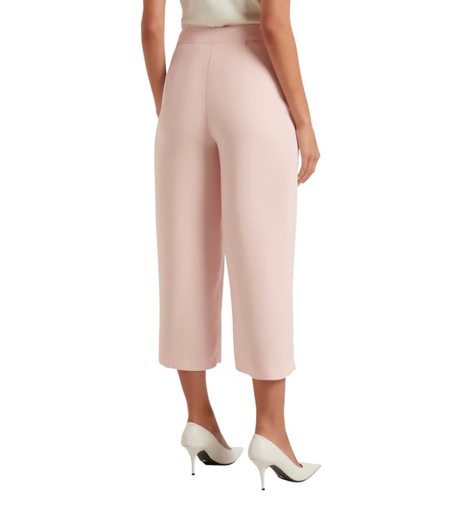 Be a picture of confidence with this sharp pair of pink culottes from the latest collection of Forever New. Well crafted in premium polyester for superb softness and unmatched drape complemented by fine lustre and excellent comfort, these are tailored in a stylishly designed regular fit with a high-rise silhouette for fine adaptation. Pair them with a constrast shirt for a stunning look.
