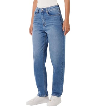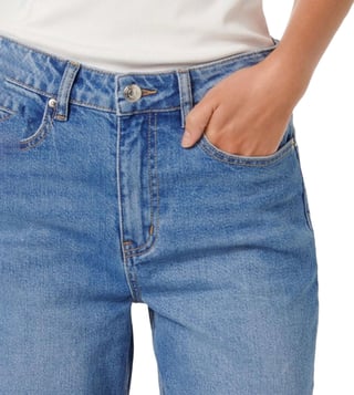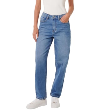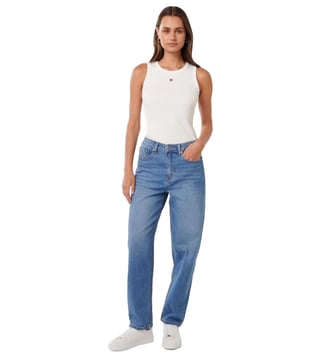 Effortlessly cool and undeniably comfortable, these straight-fit jeans are your new go-to. Crafted from a blend of soft cotton, viscose, polyester, and elastane, they offer a flattering fit and all-day wear. The classic blue wash adds a touch of timeless style, while the solid sleeves provide a sleek and modern look.