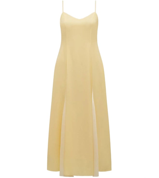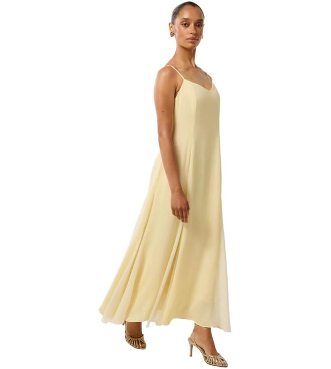 Look effortlessly stylish by wearing this yellow dress from Forever New. Tailored to sartorial perfection from premium quality fabric, it assures a soft and soothing touch against the skin. The sweet heart neck elevates its design. Flaunting stylish shoulder straps, it will surely keep you updated with the latest trend.
