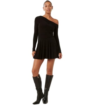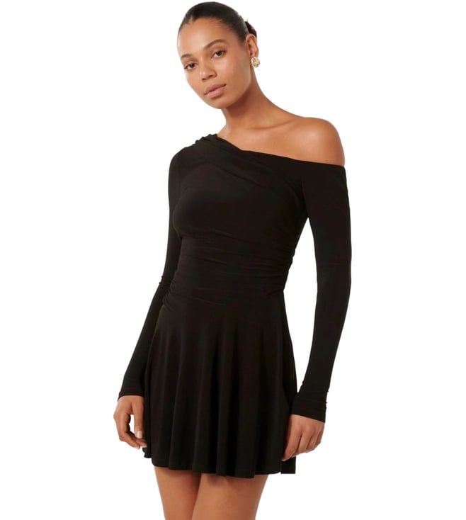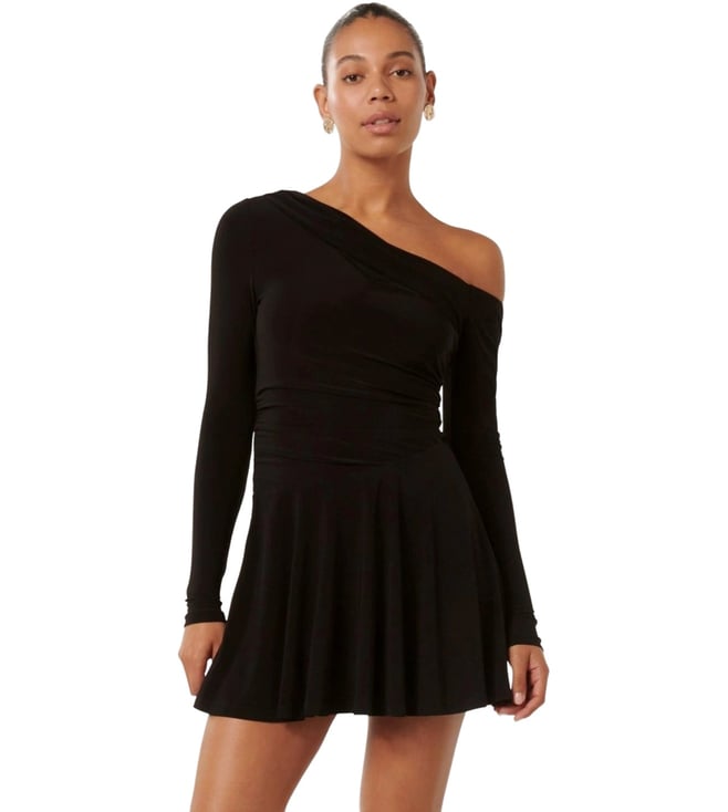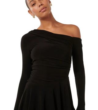Pump up your style quotient with this black one-shoulder dress from Forever New. Tailored to sartorial perfection from premium quality fabric, it assures a soft and soothing touch against the skin. Join the league of fashion elites flaunting the staple.