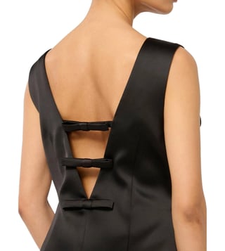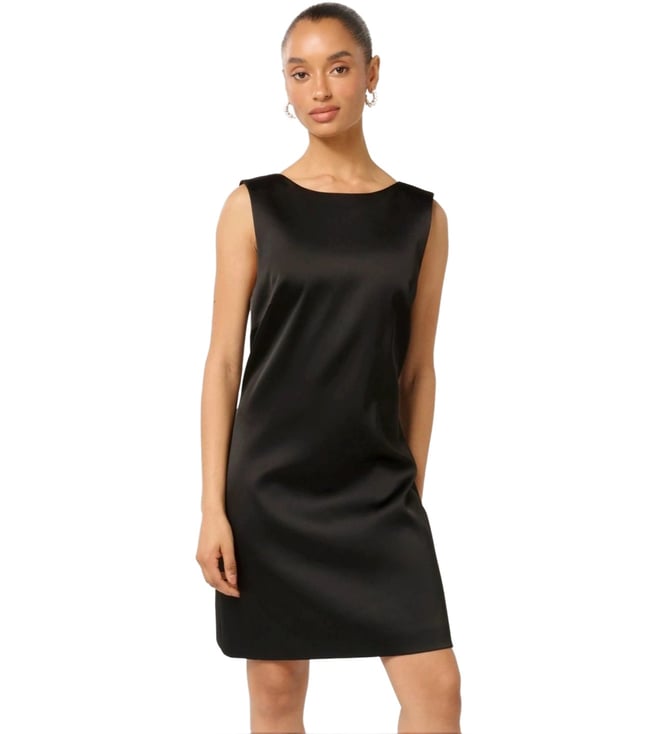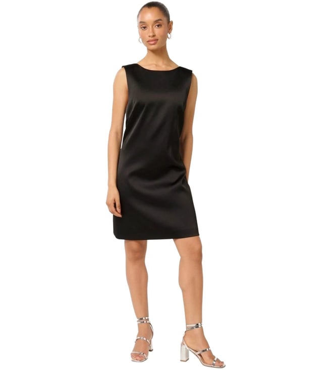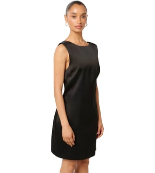 Achieve a splendid look by wearing this black sleeveless dress from Forever New. Tailored to sartorial perfection from premium quality fabric, it assures a soft and soothing touch against the skin. The boat neck elevates its design.