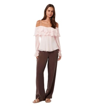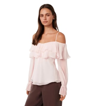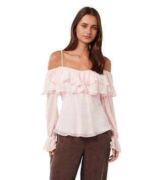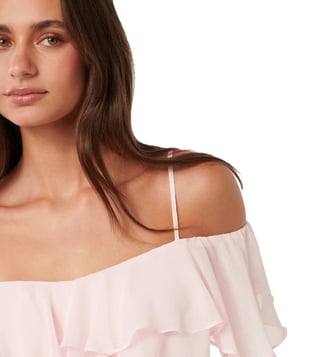 Elevate your wardrobe with the Forever New Angelic Pink Eloise Ruffle Bardot Top. This stunning piece features delicate ruffle details and a flattering Bardot neckline, adding a touch of elegance to any outfit. The regular fit ensures comfort and style, making it perfect for both casual and dressy occasions. Embrace feminine charm and timeless sophistication with this must-have top that will effortlessly elevate your look.