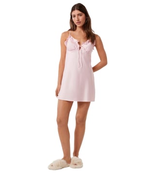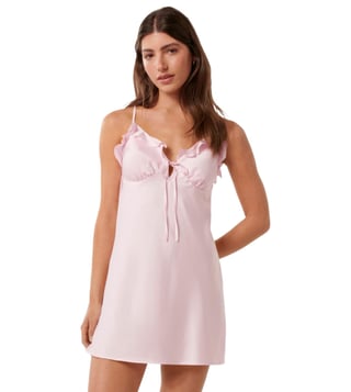 Attain exemplary perfection of style by donning this rosewater pink relaxed fit nighty from Forever New. Tailored to sartorial perfection from premium quality fabric, it assures a soft and soothing touch against the skin. Flaunting stylish shoulder straps, it will surely keep you updated with the latest trend.