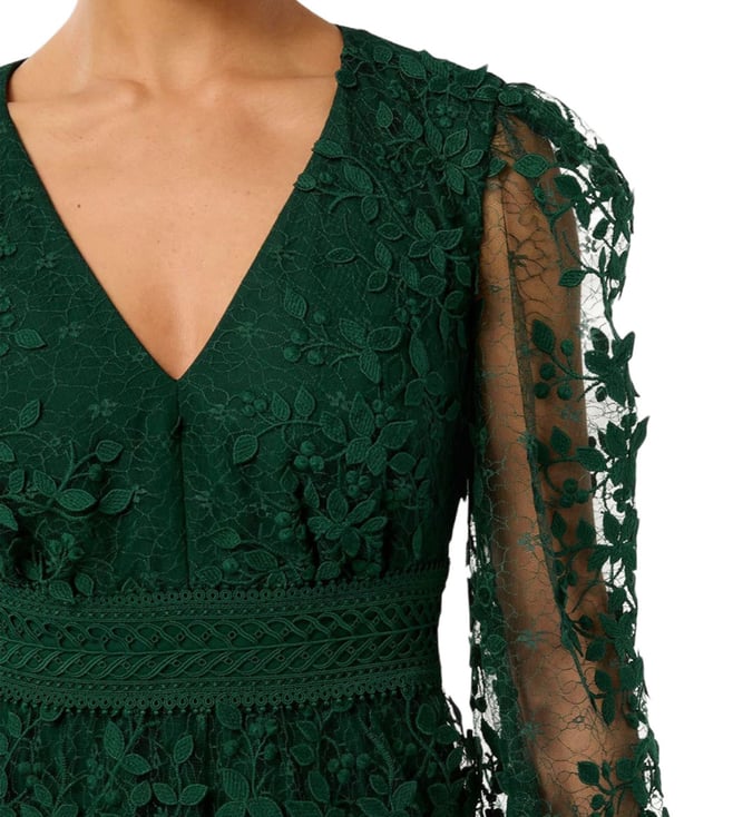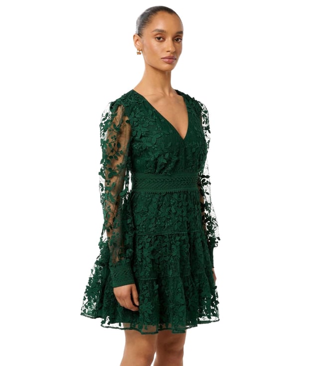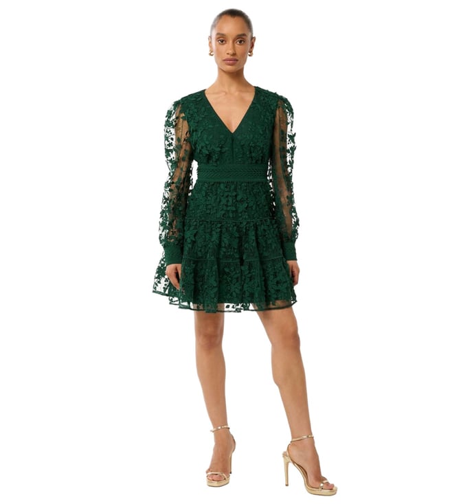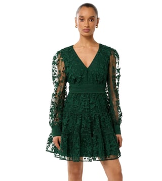 Step out in style with the Frances Petite Lace Mini Dress from Forever New. This green polyamide dress features full sleeves, perfect for party and club wear. Disclaimer: All other items in the image are only for display purposes and will not be a part of the delivery content. Product colour may slightly vary due to photographic lighting sources. Country of Origin - India.