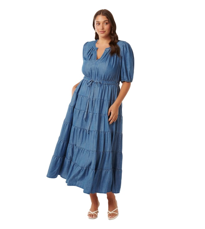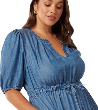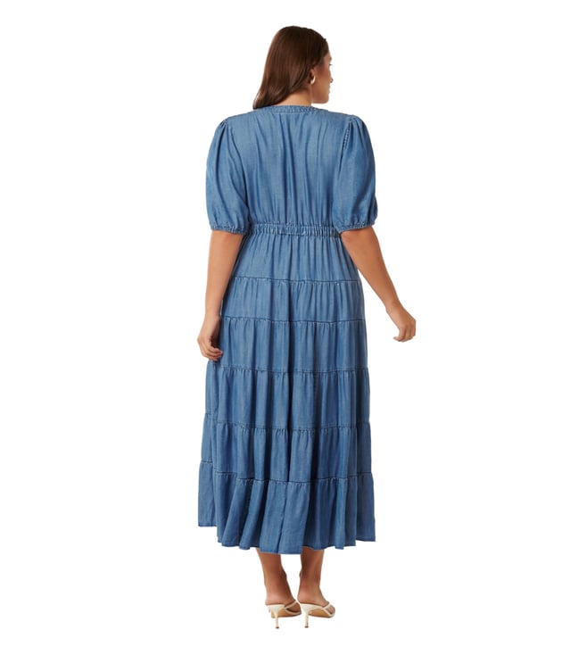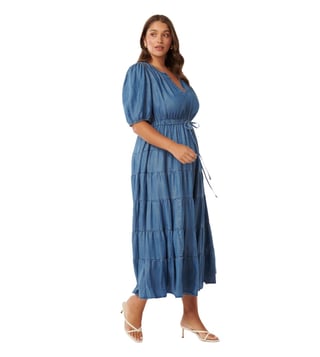 Flaunt your style with this light blue midi dress from Forever New. Made from high quality fabric, this dress features a v neck, half sleeves and solid pattern, it possesses a stylish enchantment. Style this dress with a pair of wedges for a classy modish look.