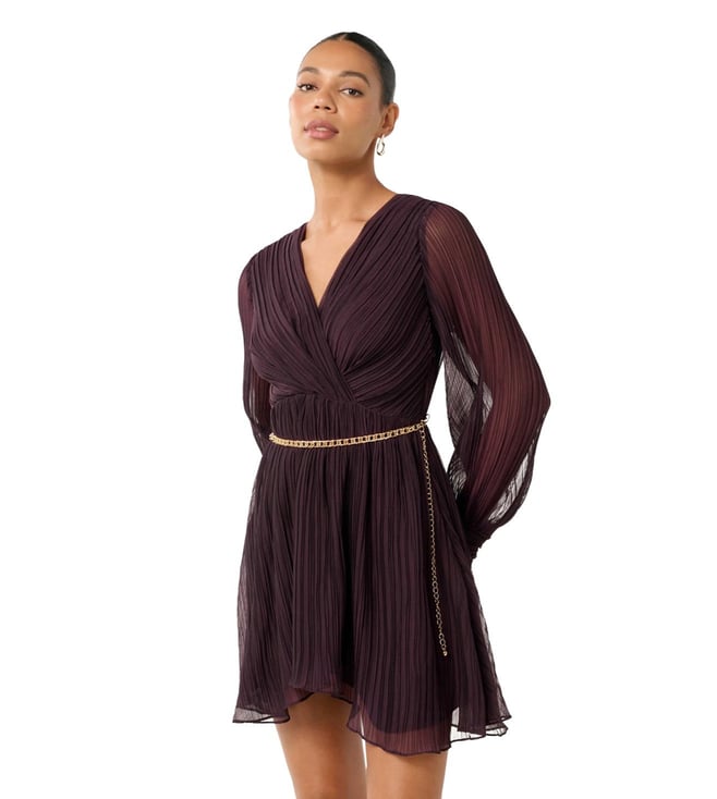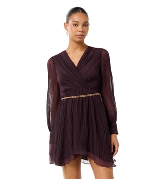Channel smart looks in your casual wardrobe with this wine a line dress with belt from Forever New. Made from high quality fabric, it will provide you with immense comfort throughout the day. Featuring a v-neck, full sleeves and solid pattern, this a line dress with belt possesses a fashionable appeal. Style this a line dress with belt with a pair of wedges for a classy modish look.