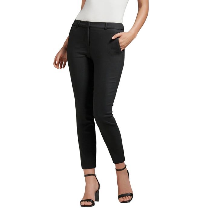 Elevate your stylish collection with these black pants from Forever New. These stylish mid rise pants features a phenomenal slim fit. Fashioned using high quality fabric, they will keep you at ease. They can be teamed up with a top and pair of sandals to complete your stylish look.