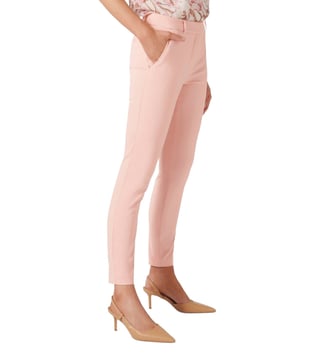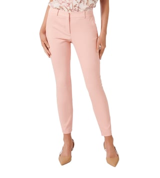 Be a picture of confidence with this sharp pair of rose pink pants from the latest collection of Forever New. Well crafted in premium stretch cotton with polyamide for superb flexibility and unmatched drape complemented by fine lustre and excellent comfort, these are tailored in a stylishly designed slim fit with a mid-rise silhouette for fine adaptation. Pair them with a constrast shirt for a stunning look.