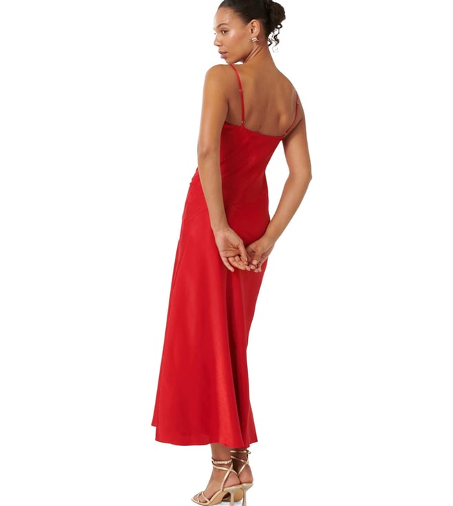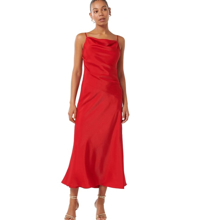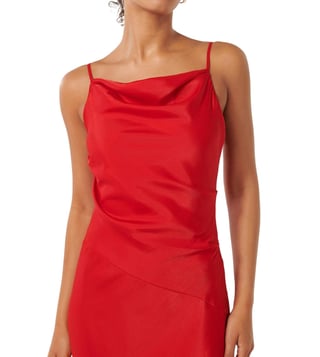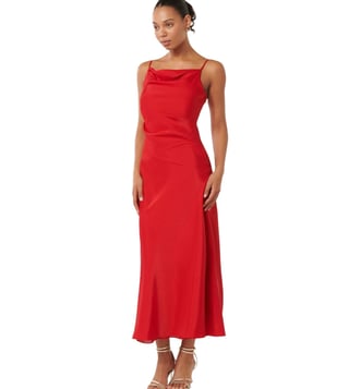 Flaunt your style with this red midi dress from Forever New. Crafted from high quality fabric gives you utmost comfort. Featuring a cowl neck and solid pattern, this midi dress holds a superlative attractiveness. Team this midi dress with a pair of sandals to look effortlessly stylish.