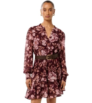 A fusion of style and comfort, this multicolored dress with belt from Forever New will be an apt inclusion to your wardrobe. Tailored to sartorial perfection from premium quality fabric, it assures a soft and soothing touch against the skin. The V-neckline adds to its appeal. Exuding full sleeves, it is sure to fetch you compliments from all. The floral print makes it a bewitching choice.