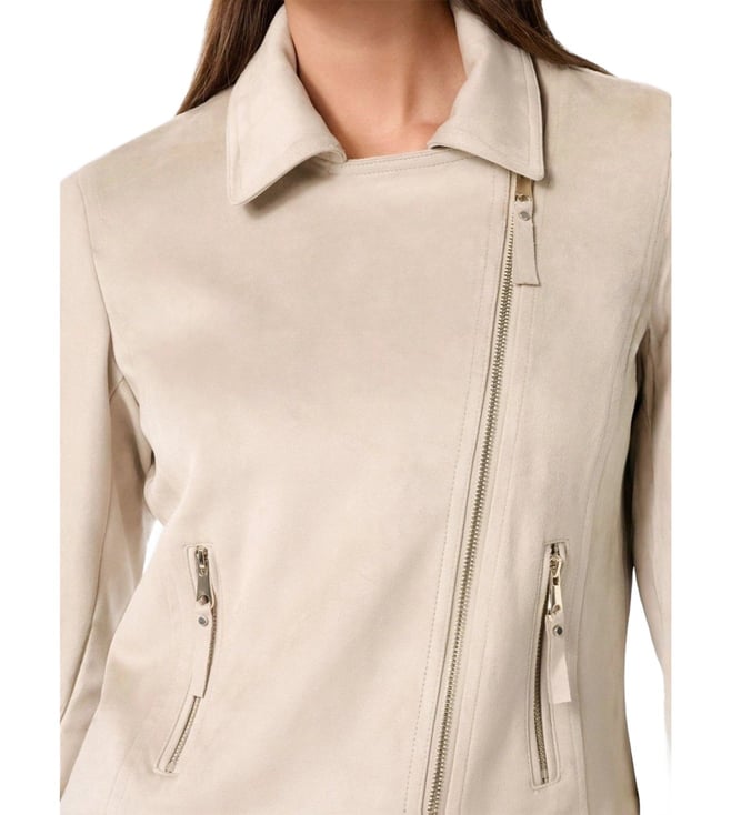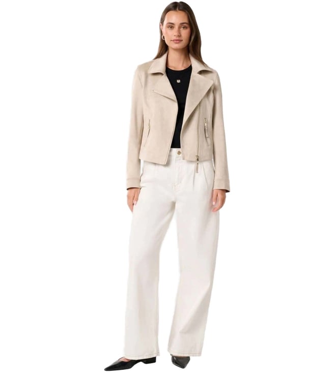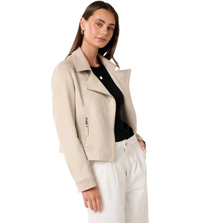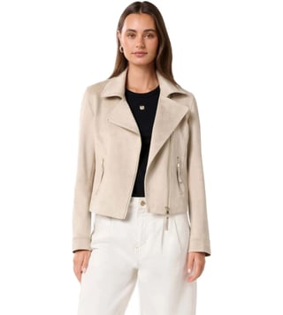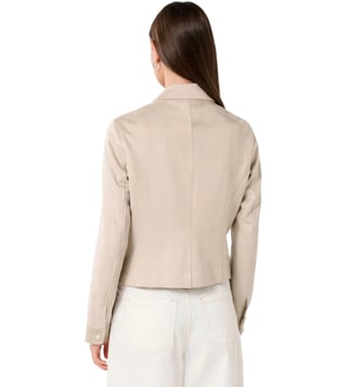 Keep your look simple yet stylish by wearing this beige jacket from Forever New. Tailored to sartorial perfection from premium quality fabric, it assures a soft and soothing touch against the skin. The notched lapel collar adds to its appeal. Exuding full sleeves, it is sure to fetch you compliments from all.