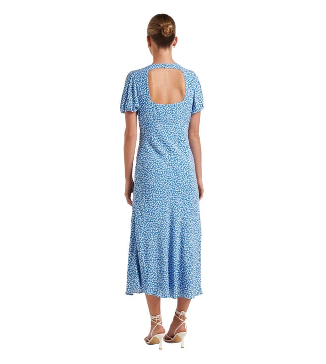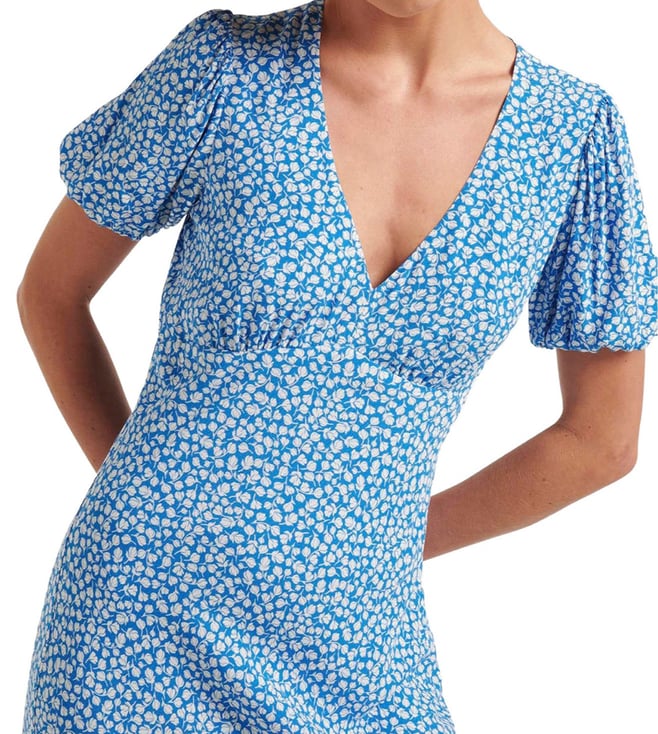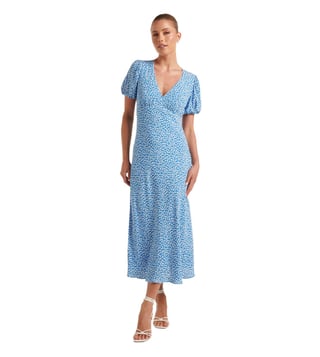 Enrich your repertoire to prepare well for the new season's outings with this gorgeous blue midi dress from the latest collection of Forever New. Beautifully tailored in premium viscose for luxurious softness and feel packed with fine sheen and excellent drape, it's vibrant floral pattern and trendy V-neck design should get you bouquets of compliments. Pair it with matching heels for a stunning look.