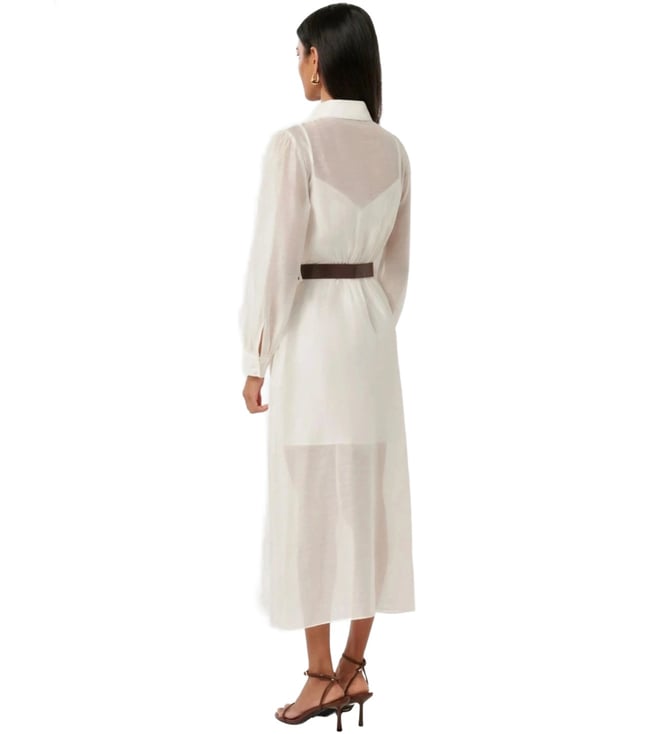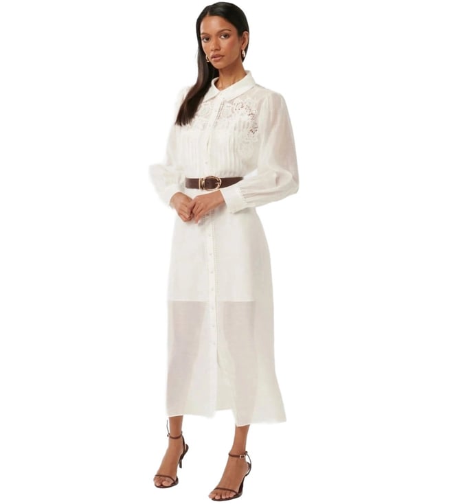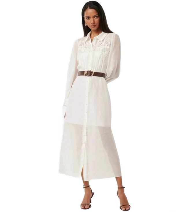 Hit the roads in style by wearing this porcelain regular fit dress from Forever New. Tailored to sartorial perfection from premium quality fabric, it assures a soft and soothing touch against the skin. The shirt collar adds to its appeal. Exuding full sleeves, it is sure to fetch you compliments from all. The embroidery work speaks for its ornate artistry.