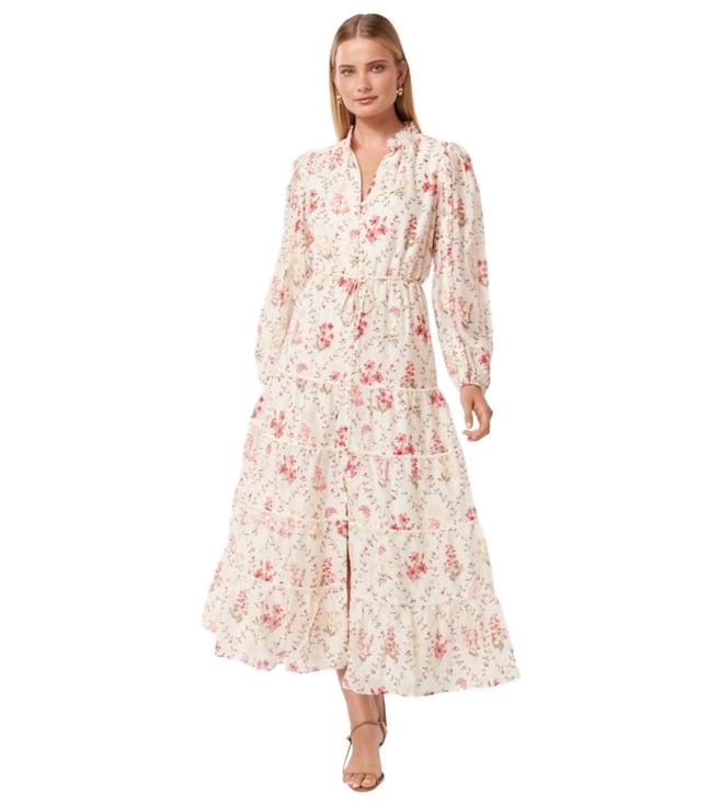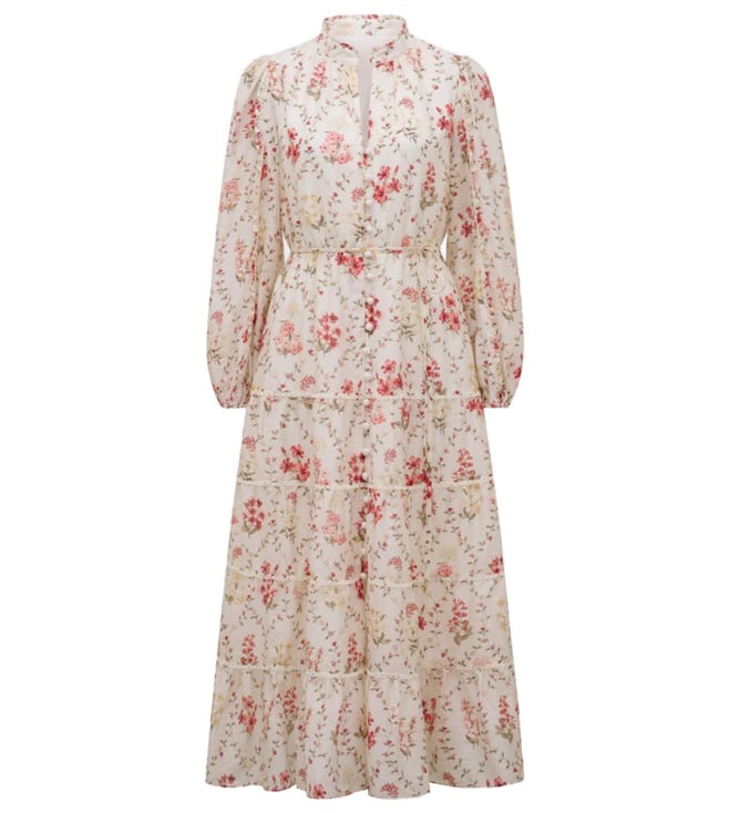 Remold the definition of cosmopolitan charm by wearing this garden trellis regular fit dress from Forever New. Tailored to sartorial perfection from premium quality fabric, it assures a soft and soothing touch against the skin. The mandarin collar augments its design. Exuding full sleeves, it is sure to fetch you compliments from all. The floral print makes it a bewitching choice.