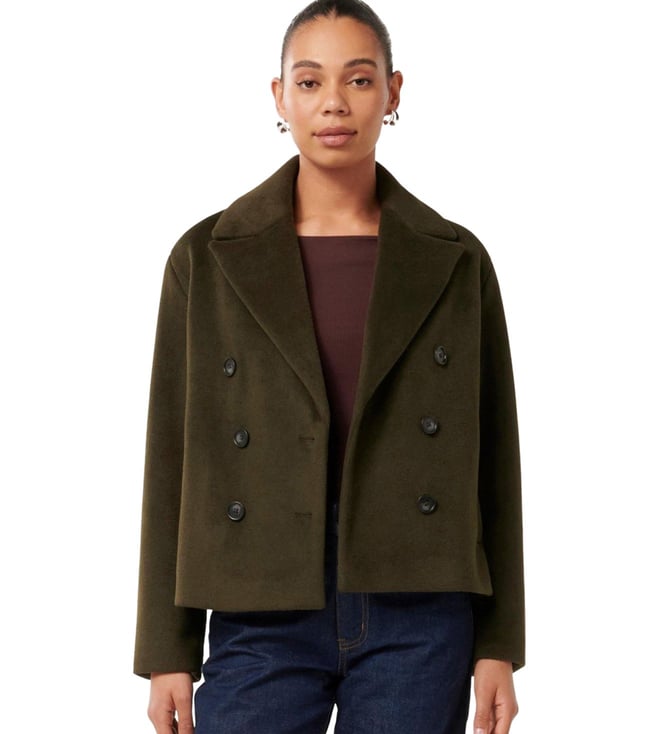 Elevate your casual wear with the Forever New Dark Khaki Blended Slim Fit Coat. Designed for women, this stylish coat is perfect for effortless chic during any occasion. Disclaimer: All other items in the image are only for display purposes and will not be a part of the delivery content. Product colour may slightly vary due to photographic lighting sources. Country of Origin - India.