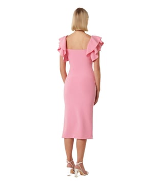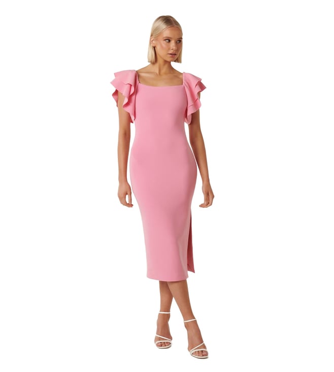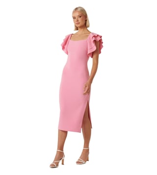 Channel smart looks in your casual wardrobe with this pink bodycon dress from Forever New. Featuring a square neck, half sleeves and solid pattern, this dress holds a superlative attractiveness. Team this dress with a pair of sandals to look effortlessly stylish.