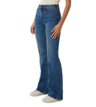 Be prepared to give out some sassy tips on style and flair when you move around in this cool pair of blue lightly washed jeans from the house of the iconic Forever New. Masterfully crafted in premium stretch cotton lyocell for luxurious flexibility and softness for a second-skin feel backed by excellent comfort, their modern regular fit with a high-rise silhouette gives them a unique fashion edge. Pair them with a tank top and sneakers for a diva look.