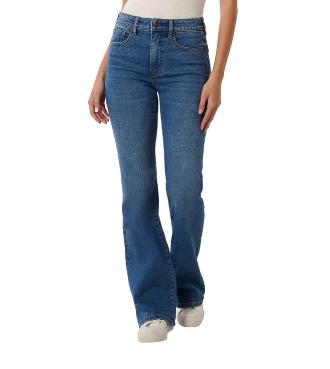 Be prepared to give out some sassy tips on style and flair when you move around in this cool pair of blue lightly washed jeans from the house of the iconic Forever New. Masterfully crafted in premium stretch cotton lyocell for luxurious flexibility and softness for a second-skin feel backed by excellent comfort, their modern regular fit with a high-rise silhouette gives them a unique fashion edge. Pair them with a tank top and sneakers for a diva look.