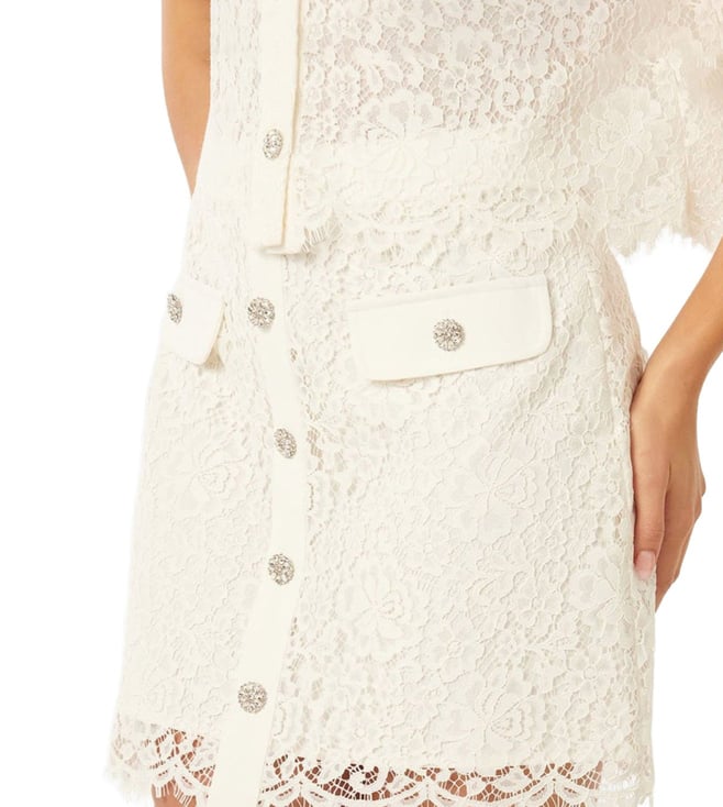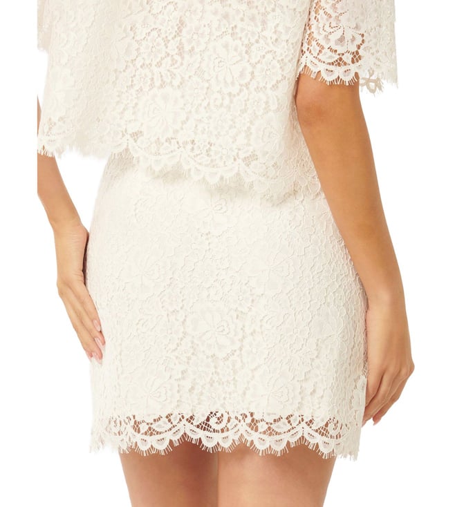 Spring up a stylish surprise in your circles with this awesome white skirt from the latest collection of Forever New. Finely crafted in prime quality cotton polyamide for a luxurious smoothness packed with fine sheen and superb drape, it's modern lace pattern makes it a just companion for many a combination. Pair it with a light-hued print top to enliven the evening.