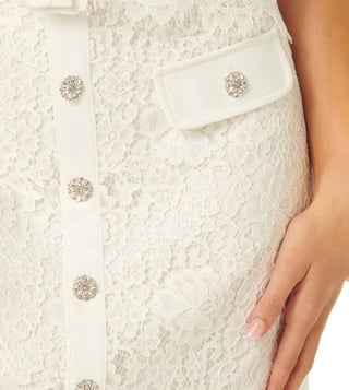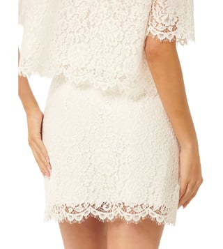 Spring up a stylish surprise in your circles with this awesome white skirt from the latest collection of Forever New. Finely crafted in prime quality cotton polyamide for a luxurious smoothness packed with fine sheen and superb drape, it's modern lace pattern makes it a just companion for many a combination. Pair it with a light-hued print top to enliven the evening.