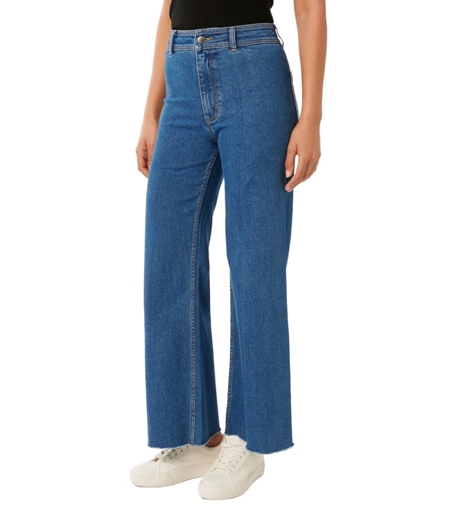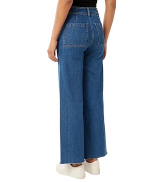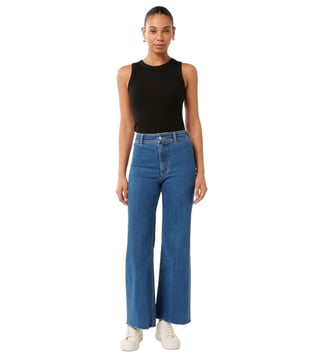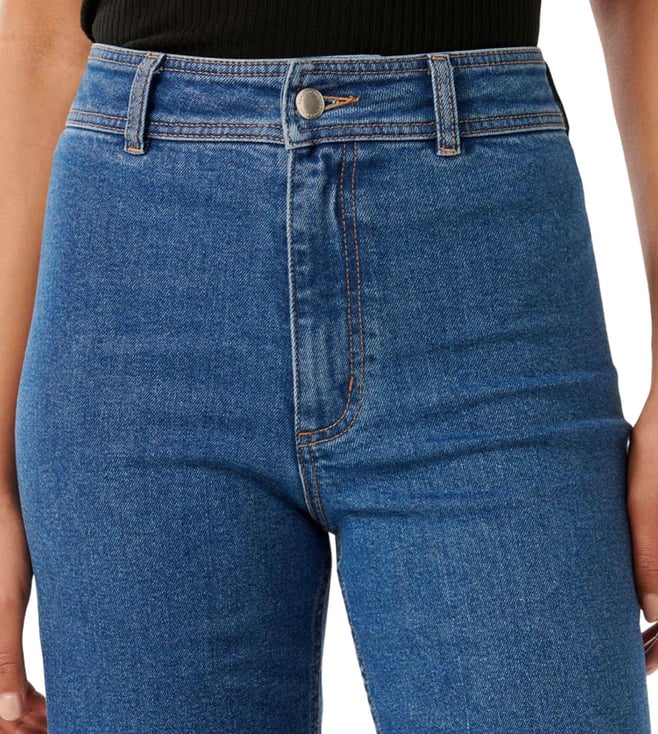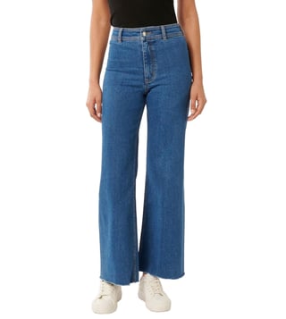 The Forever New Blue Cotton Flaired Fit Jeans offer a stylish and comfortable casual wear option for women. Made from high-quality Blue Cotton, they ensure durability and a flattering fit. Disclaimer: All other items in the image are only for display purposes and will not be a part of the delivery content. Product colour may slightly vary due to photographic lighting sources. Country of Origin - India.