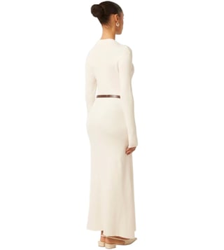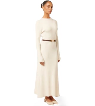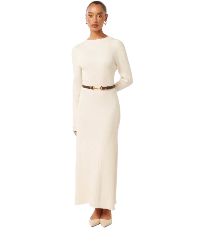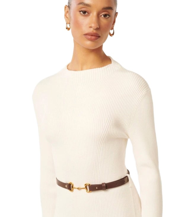 Look effortlessly stylish by wearing this cream dress with belt from Forever New. Tailored to sartorial perfection from premium quality fabric, it assures a soft and soothing touch against the skin. The crew neck adds to its appeal. Exuding full sleeves, it is sure to fetch you compliments from all.