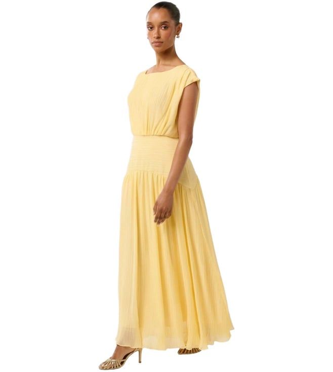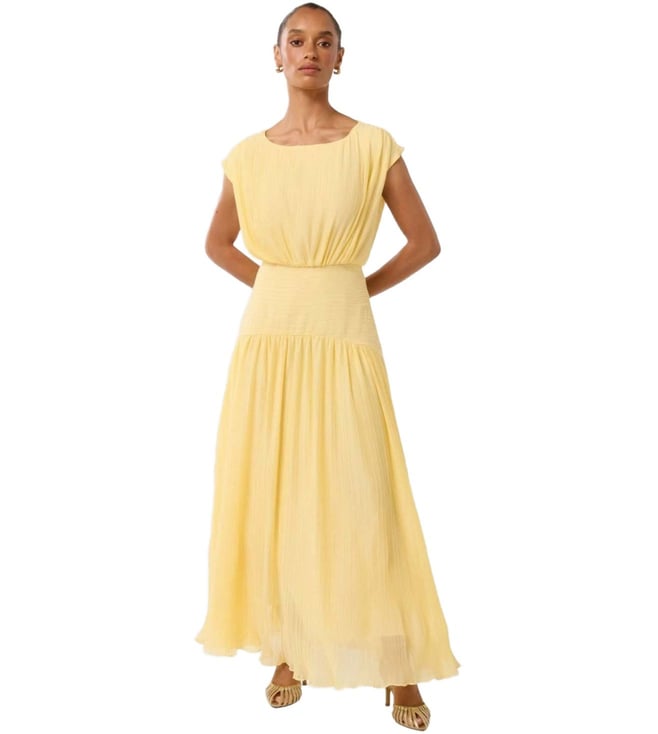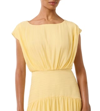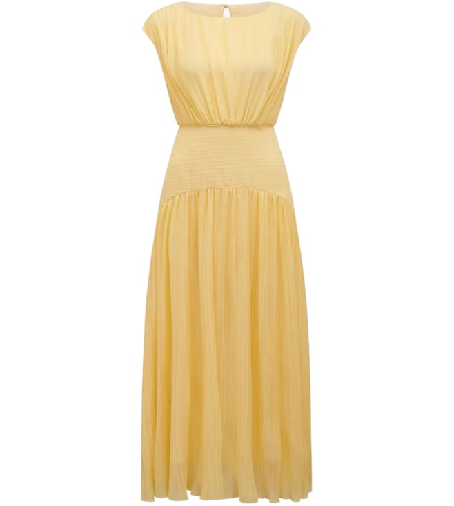 Curate a stylish look by wearing this yellow dress from Forever New. Tailored to sartorial perfection from premium quality fabric, it assures a soft and soothing touch against the skin. The boat neck elevates its design.