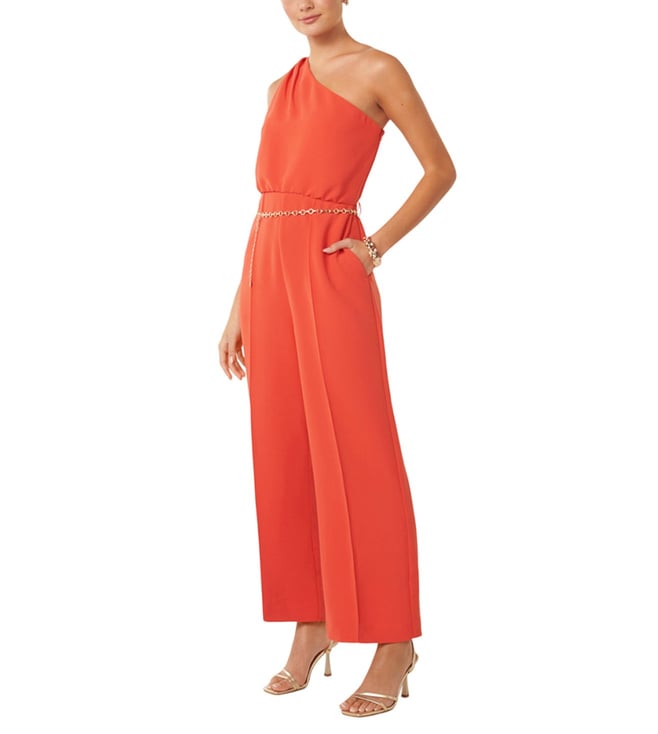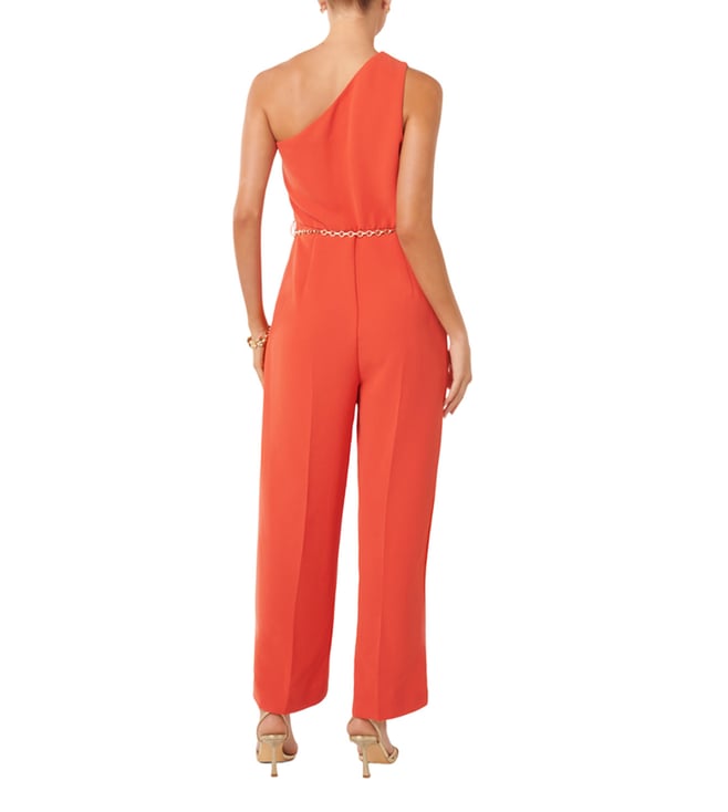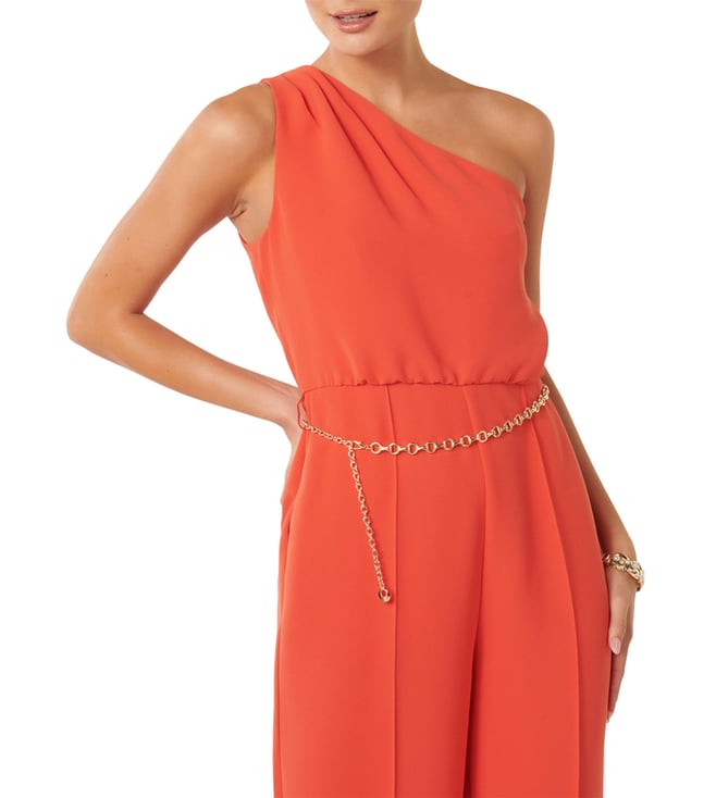Induce a touch of charm with this must-have jumpsuit. It features a flattering neckline and a chic one-shoulder design with gathers through the shoulder strap. With a removable chain waist belt, side pockets, and concealed side zipped, it offers a contemporary and charming ensemble.