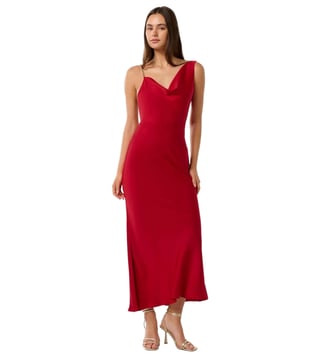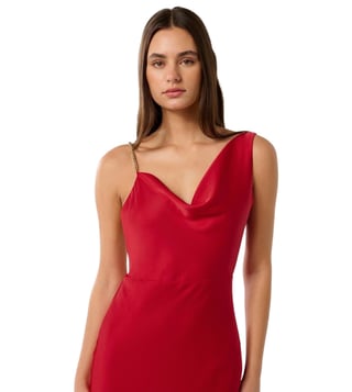 Embrace the allure of effortless elegance in this captivating red maxi dress. Crafted from a luxuriously soft blend, it drapes beautifully, accentuating your figure with a flattering flare fit. The cowl neck adds a touch of sophistication, while the delicate shoulder straps provide a feminine touch. This timeless piece is perfect for everything from casual strolls to special occasions, making it a versatile addition to your wardrobe.