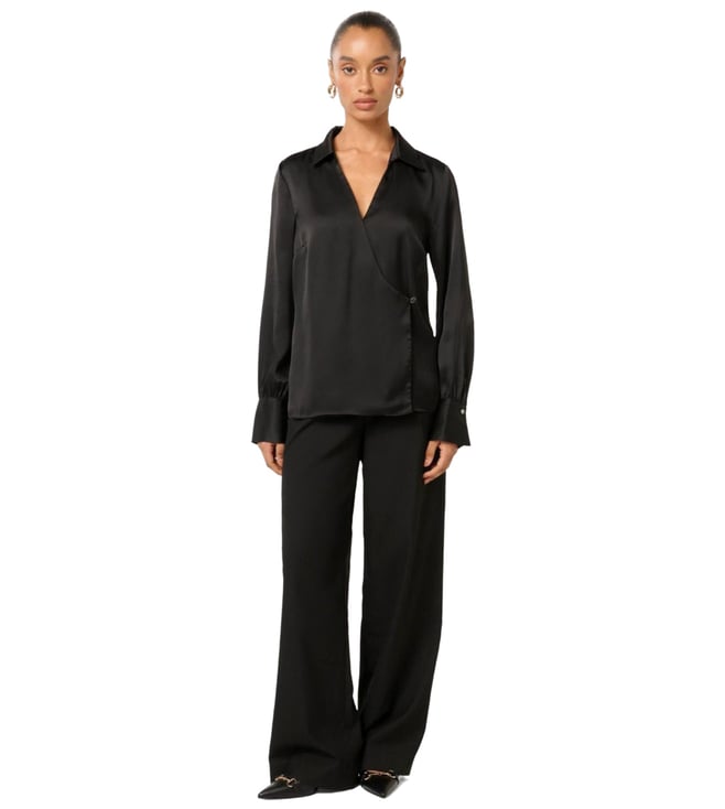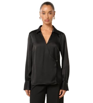 Elevate your casual wardrobe with the Minnie Petite Wrap Shirt from Forever New. This black polyester piece is designed for women, perfect for effortless style. Disclaimer: All other items in the image are only for display purposes and will not be a part of the delivery content. Product colour may slightly vary due to photographic lighting sources. Country of Origin - India.