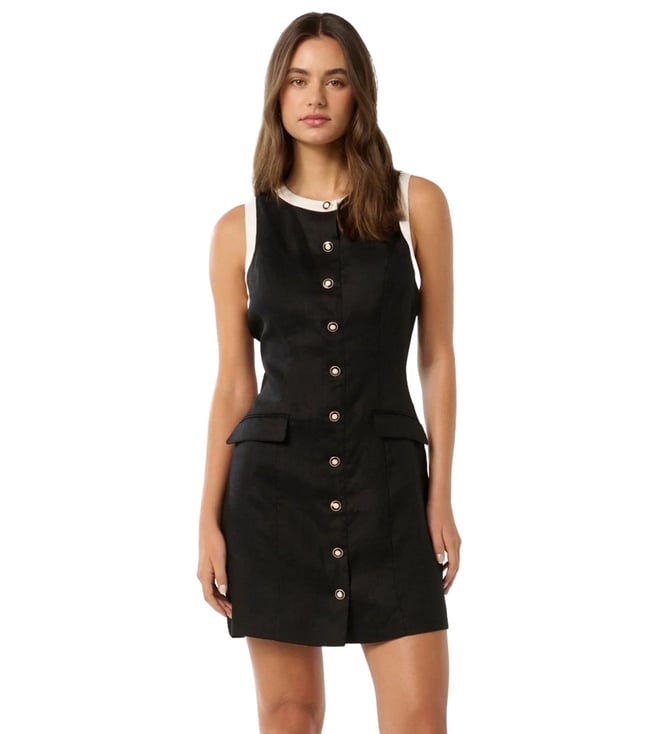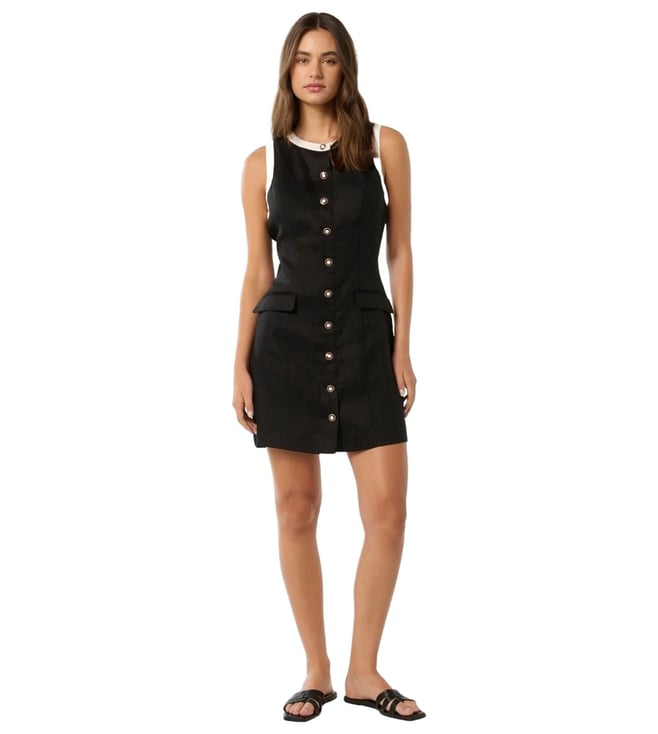 Effortlessly chic, this linen mini dress embodies summer sophistication. The black hue is timeless and flattering, while the relaxed fit allows for breezy comfort. Crafted from pure linen, it breathes and drapes beautifully, creating a flattering silhouette. The sleeveless design and round neckline offer a classic touch, perfect for day-to-night transitions. The viscose lining ensures a smooth and comfortable wear.