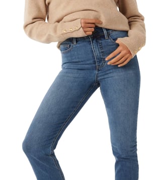 Give your casual wardrobe a stylish lift with these blue jeans from Forever New. These trendy high rise jeans features a charming slim fit along with solid pattern. Made from cotton fabric, they are comfortable to wear and stylish in look. They can be teamed up with a top and sandals to complete your stylish look.