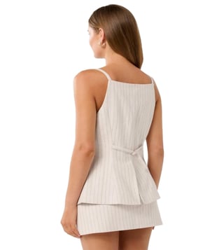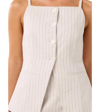 Elevate your wardrobe with the Forever New neutral stripe ronnie striped waistcoat. This regular fit waistcoat features a timeless striped design that effortlessly adds sophistication to any outfit. Made with high-quality materials, this waistcoat is not only stylish but also comfortable to wear. Perfect for formal occasions or adding a touch of class to your everyday look, this waistcoat is a versatile and must-have addition to your collection. Upgrade your style with the Forever New neutral stripe ronnie striped waistcoat today.