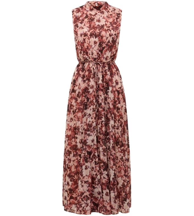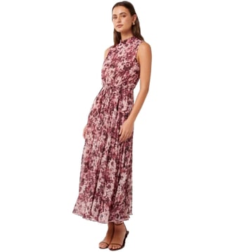 Hit the roads in style by wearing this multicolored sleeveless dress with belt from Forever New. Tailored to sartorial perfection from premium quality fabric, it assures a soft and soothing touch against the skin. The halter neck elevates its design. The floral print makes it a bewitching choice.
