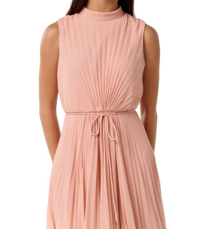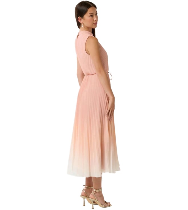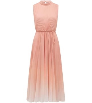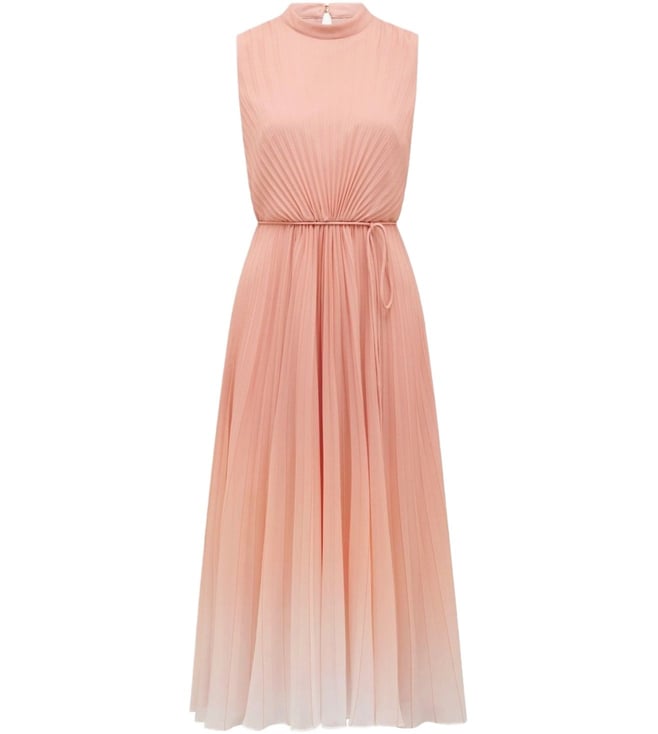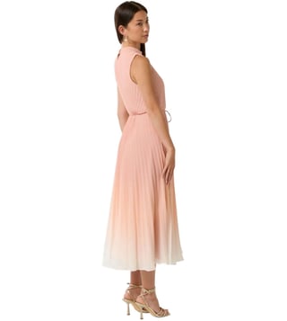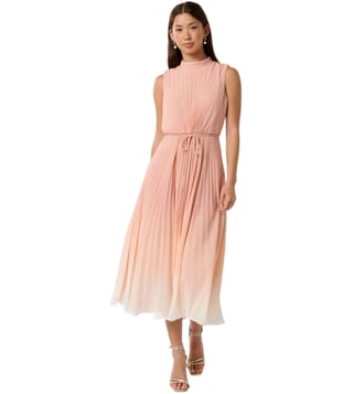 Rekindle your style quotient by wearing this pink sleeveless dress from Forever New. Tailored to sartorial perfection from premium quality fabric, it assures a soft and soothing touch against the skin. The mock collar adds to its appeal. The ombre pattern makes it all the more appealing.