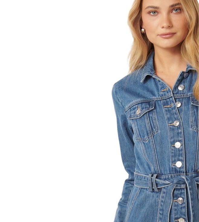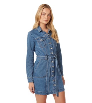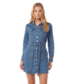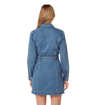 Add a contemporary edge to your looks with this navy shirt dress from Forever New. Made from cotton fabric, this shirt dress will keep you sweat free all day long. Featuring a shirt collar, full sleeves and solid pattern, this shirt dress boasts of in vogue charisma. Charm the world by coordinating this shirt dress with a pair of strappy flats.