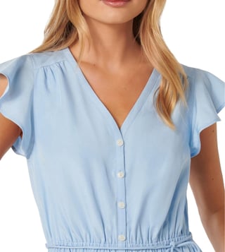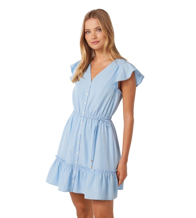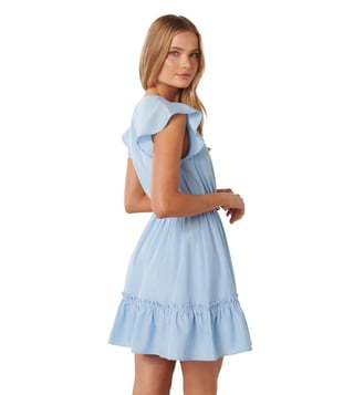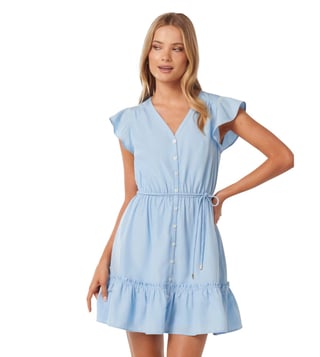 Channel smart looks in your casual wardrobe with this light blue shirt dress from Forever New. This high quality fabric dress is light in weight. Featuring a v neck, half sleeves and solid pattern, this dress holds an elegant enchantment. Team this dress with a pair of ballerinas for a chic look.